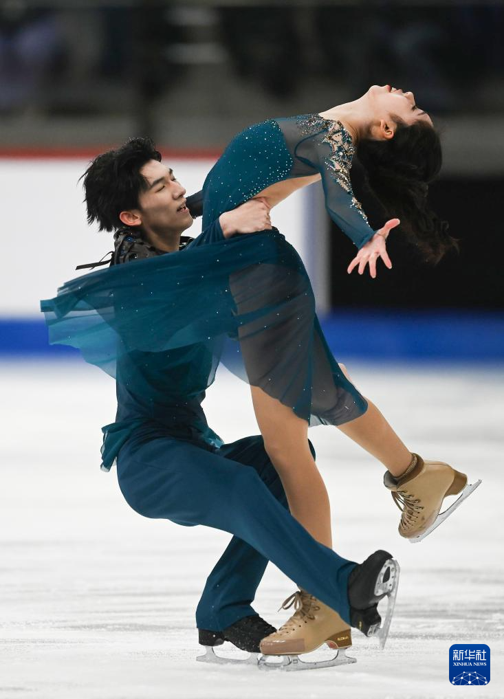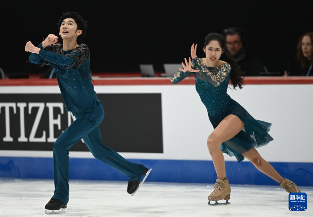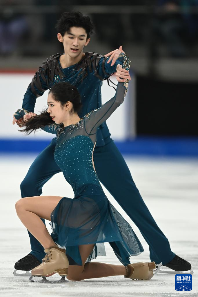 3月7日,中国组合殷善洁/杨士锐(左)在冰舞自由舞比赛中。最终,他们获得冰舞项目第18名。