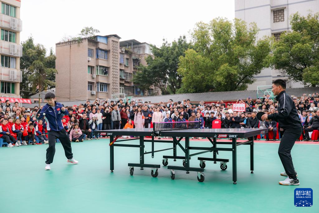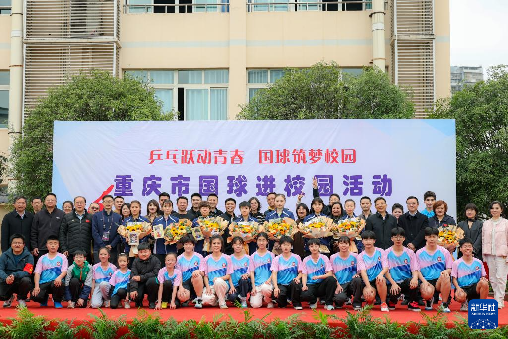 3月8日,国家乒乓球队女队来到重庆市鱼洞中学,与鱼洞中学乒乓球项目优秀学生代表和学生进行现场切磋交流。