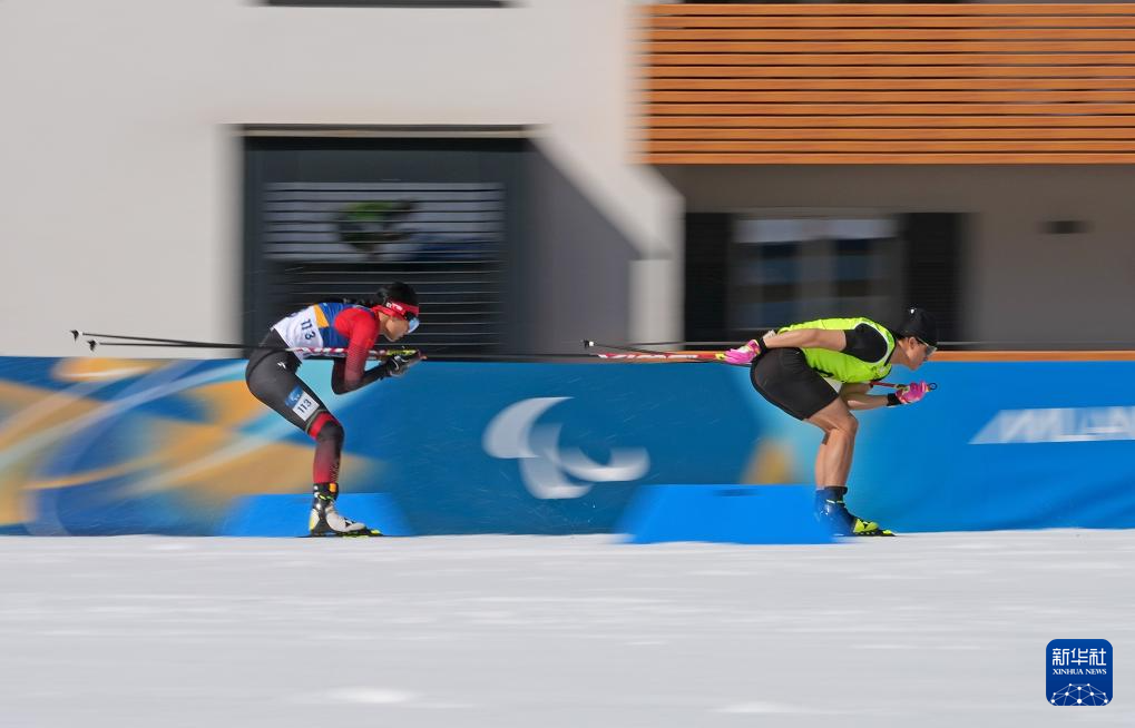 当地时间3月8日,在意大利泰塞罗举行的米兰-科尔蒂纳冬残奥会冬季两项女子中距离(视障)比赛中,中国选手王跃夺得冠军。
