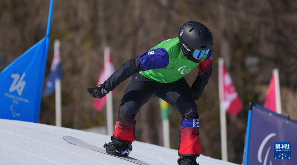 当地时间3月8日,在意大利科尔蒂纳举行的米兰-科尔蒂纳冬残奥会单板滑雪男子障碍追逐UL级比赛中,中国选手纪立家获得冠军,朱永钢获得亚军。