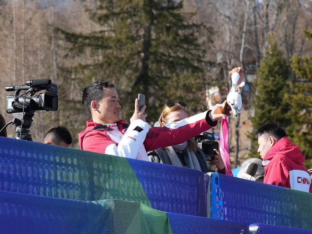 “感谢我们这个团队,团队里的所有人都在为今天去付出,没有他们也没有今天的我。”他说,“我们教练在上面跟我说,什么也不要想,就滑你自己的,给我吃了定心丸,鼓励我。然后我们打蜡师用的东西也都是最好的,才能让我今天去拿到这个冠军。”