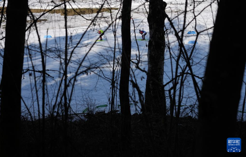 3月8日,中国选手党鹤松(左)与引导员卢宏达在比赛中。