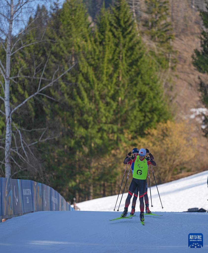 当地时间3月8日,在意大利泰塞罗举行的米兰-科尔蒂纳冬残奥会冬季两项男子中距离(视障)比赛中,中国选手党鹤松夺冠。