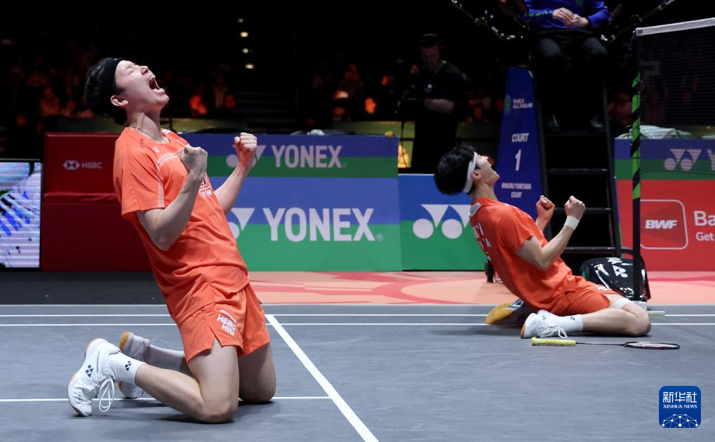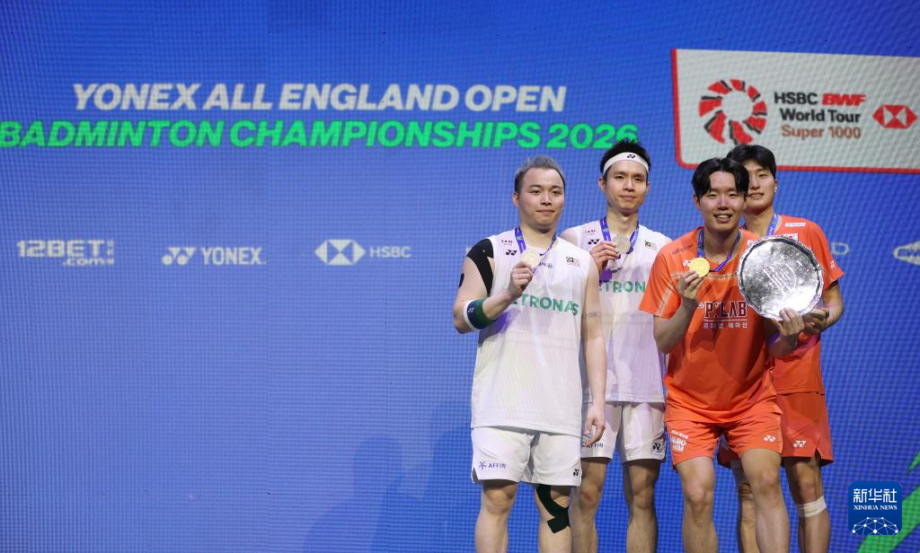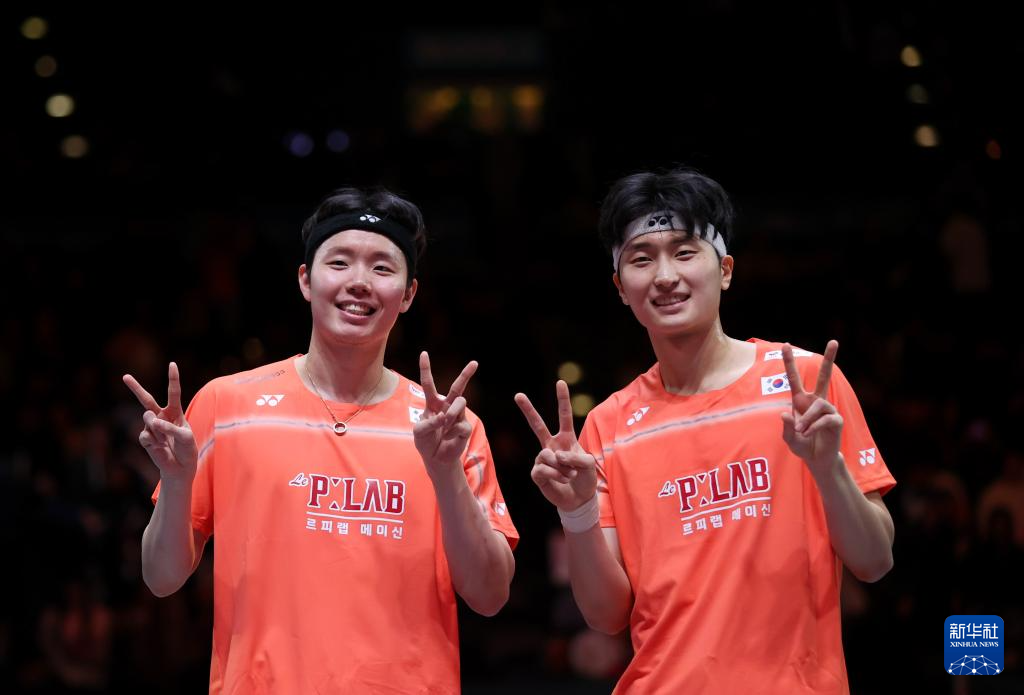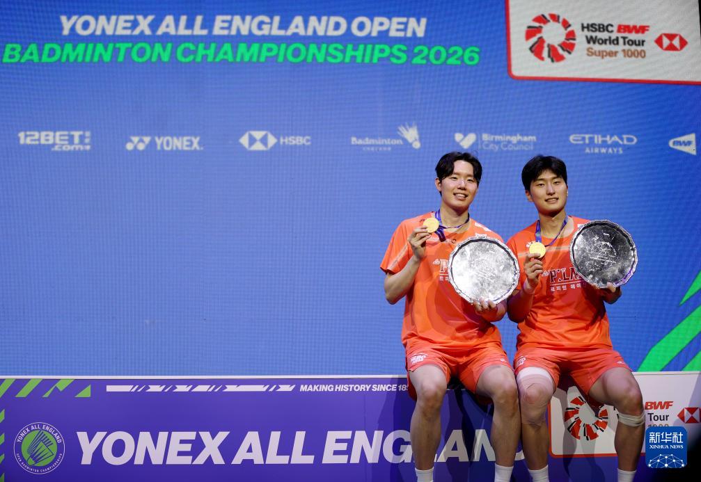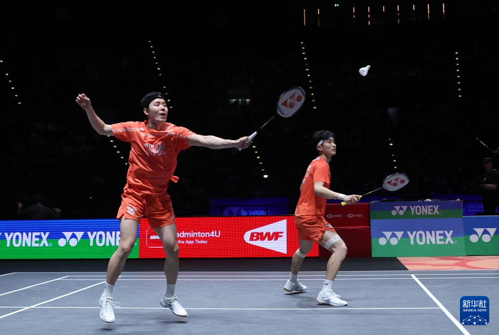 当地时间3月8日,在英国伯明翰举行的全英羽毛球公开赛男双决赛中,韩国组合徐承宰/金元浩2比1战胜马来西亚组合谢定峰/苏伟译,获得冠军。