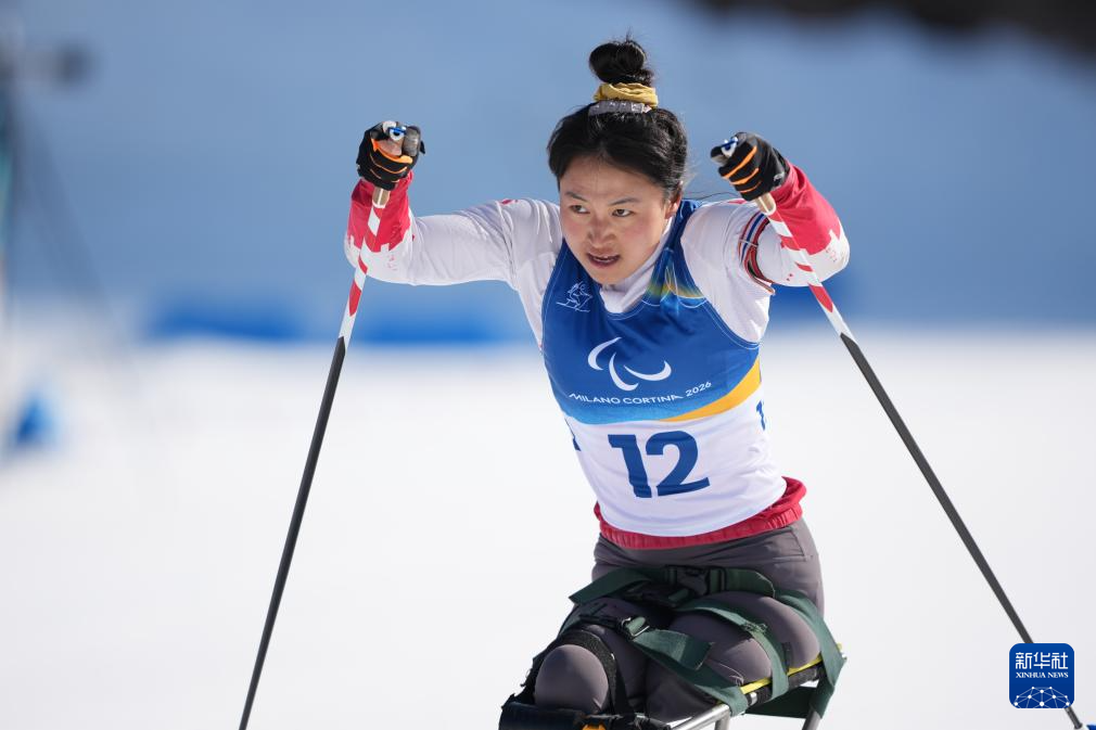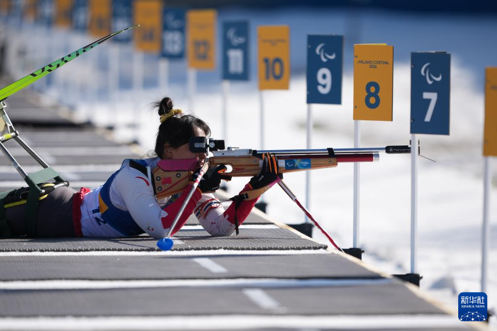 当地时间3月8日,米兰-科尔蒂纳冬残奥会冬季两项女子中距离(坐姿)比赛在意大利泰塞罗举行。
