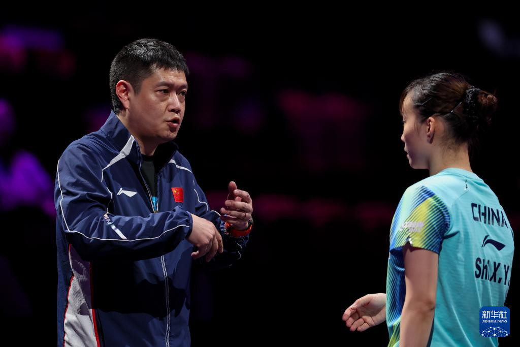3月11日,教练邱贻可(左)在比赛间隙指导石洵瑶。