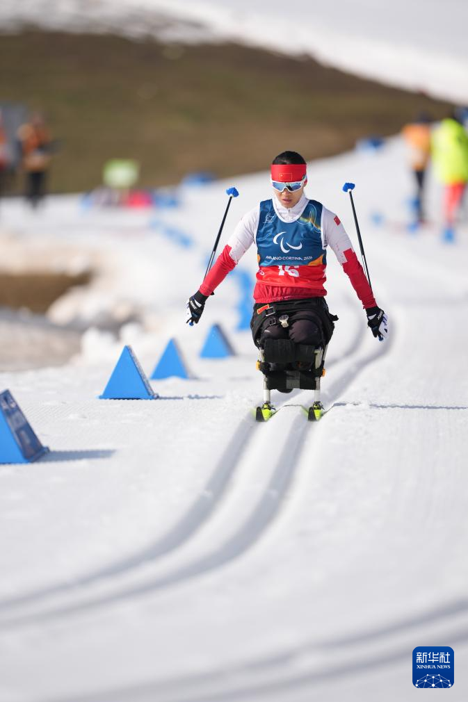 当地时间3月11日,米兰-科尔蒂纳冬残奥会越野滑雪女子中距离(坐姿)比赛在意大利泰塞罗举行。