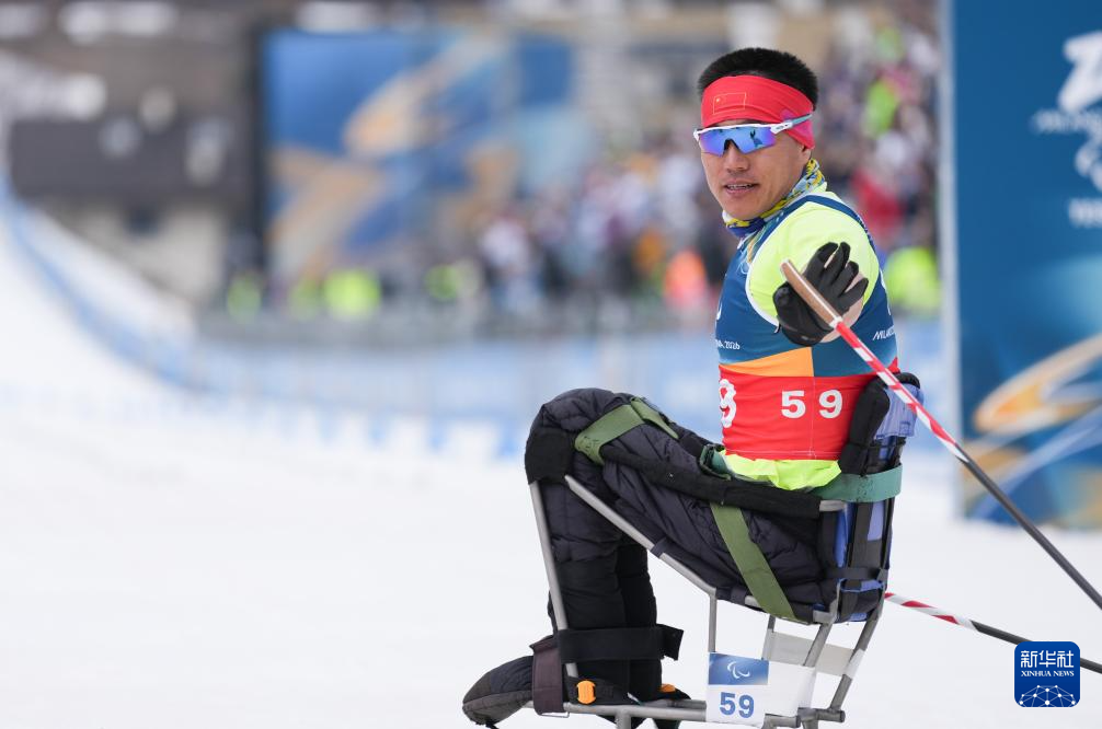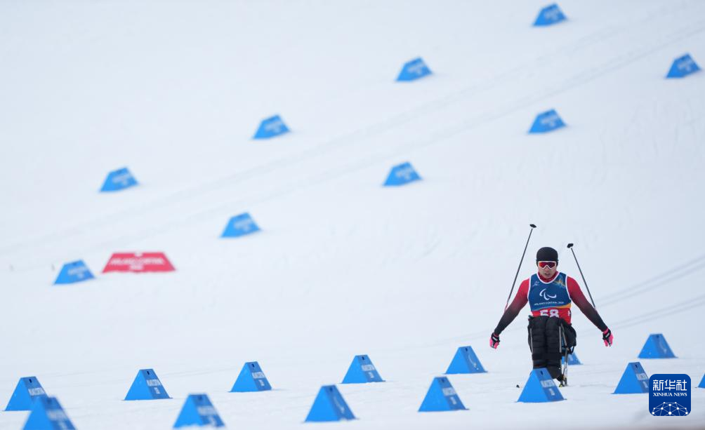 当地时间3月11日,米兰-科尔蒂纳冬残奥会越野滑雪男子中距离(坐姿)比赛在意大利泰塞罗举行。