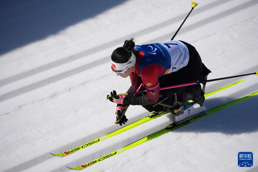 3月11日,中国选手单怡霖在米兰-科尔蒂纳冬残奥会越野滑雪女子中距离(坐姿)比赛中获得第七名。新华社记者 侯昭康 摄