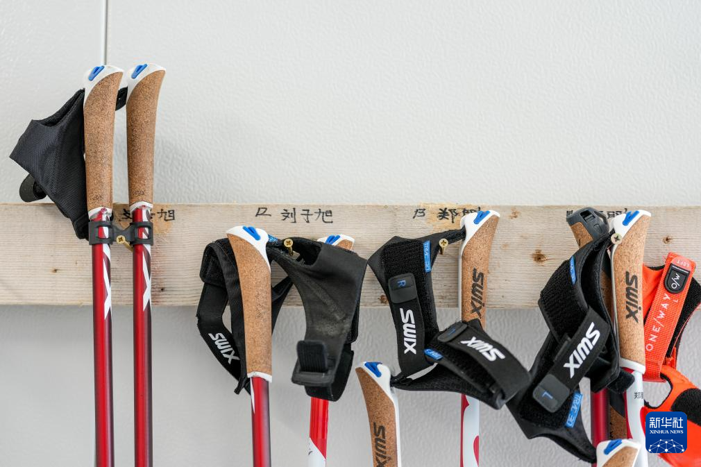 这是3月9日在泰塞罗越野滑雪中心拍摄的中国运动员们的雪杖。新华社记者 连振 摄