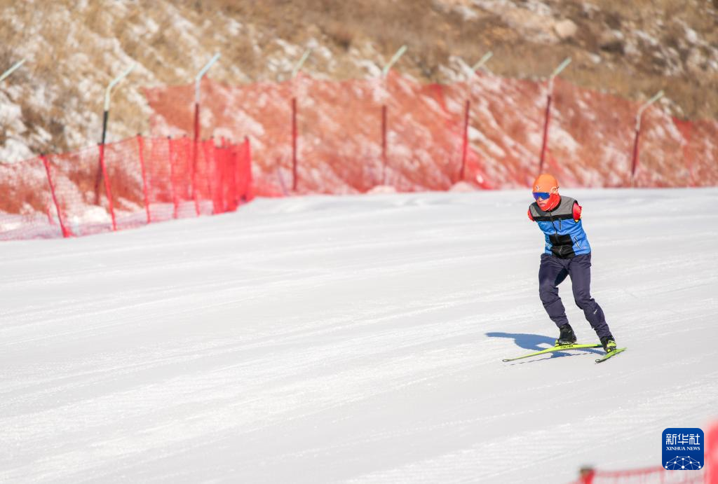 2月3日,中国运动员黄灵心在岱海国际滑雪场进行训练。新华社记者 连振 摄