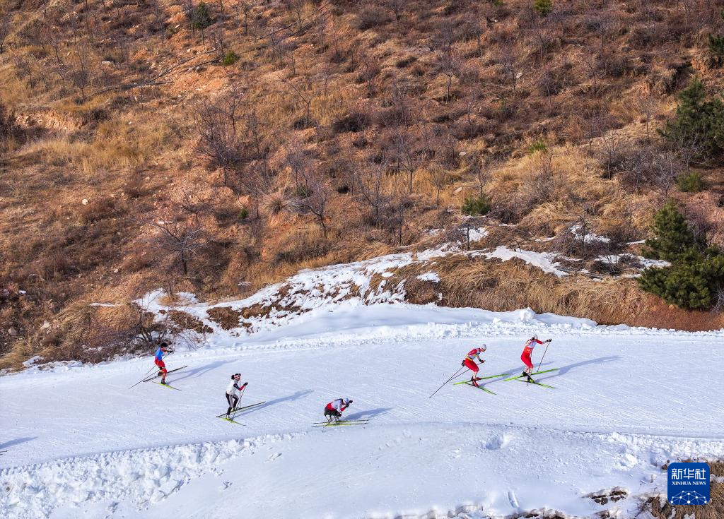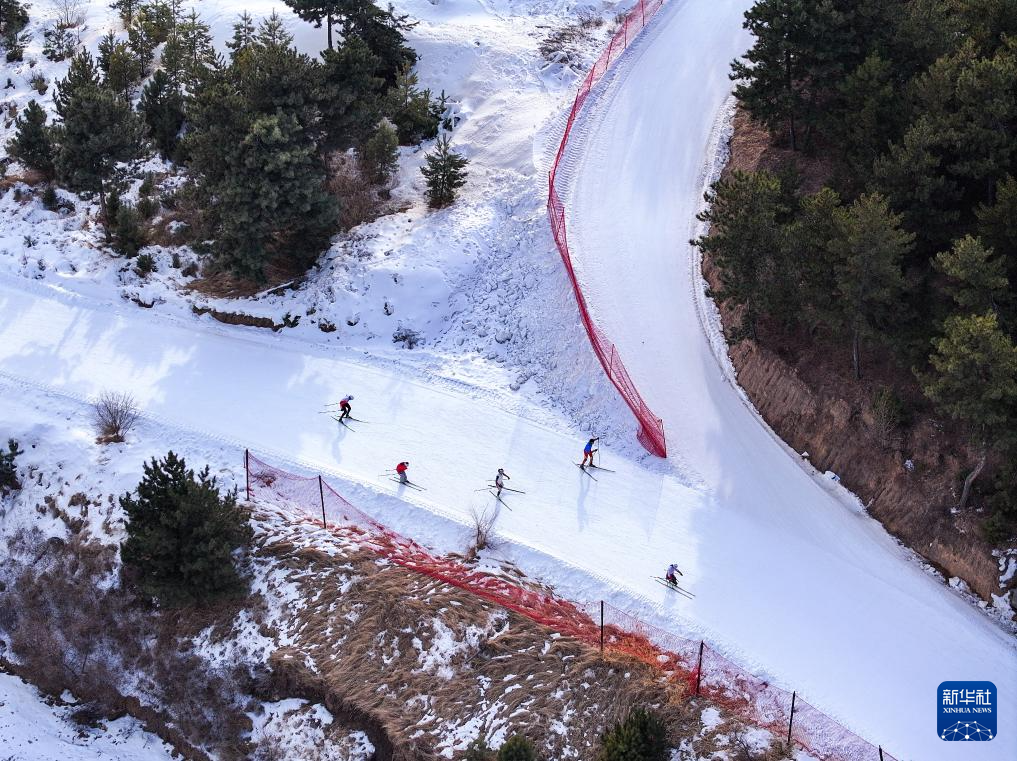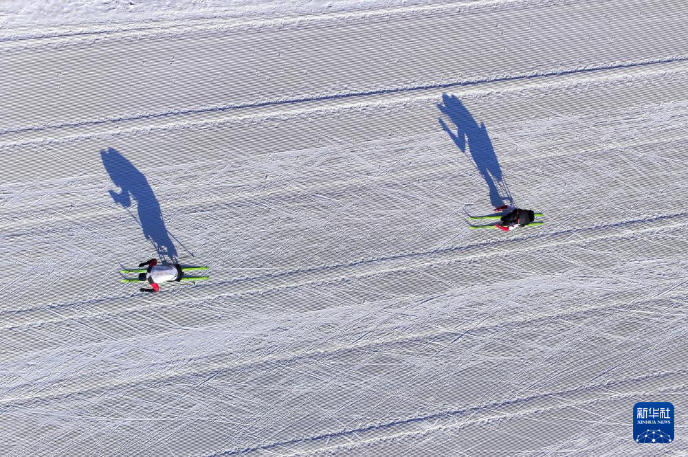 2月3日,中国运动员在岱海国际滑雪场训练(无人机照片)。新华社记者 连振 摄