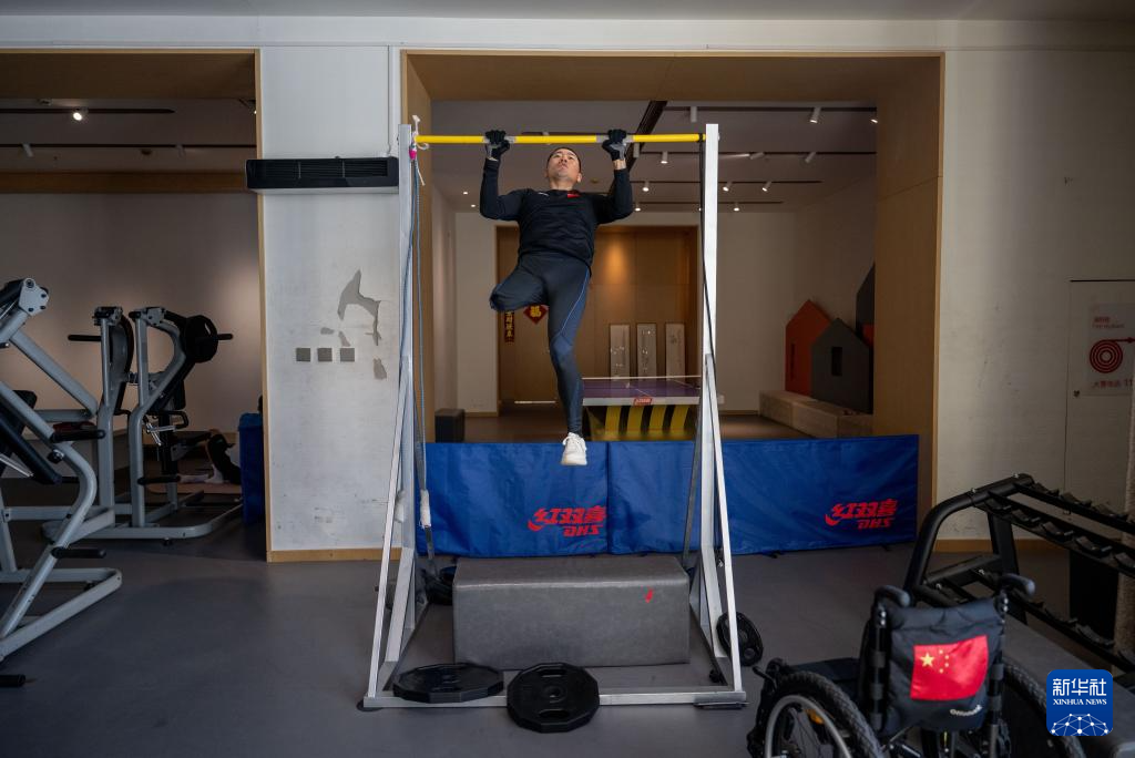2月3日,中国运动员王涛在岱海国际滑雪场进行室内力量训练。新华社记者 连振 摄