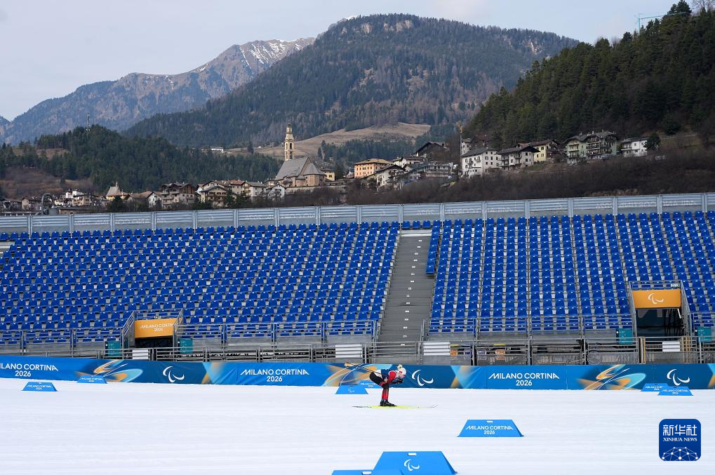 3月9日,中国运动员杨倩茹在泰塞罗越野滑雪中心进行训练。新华社记者 侯昭康 摄