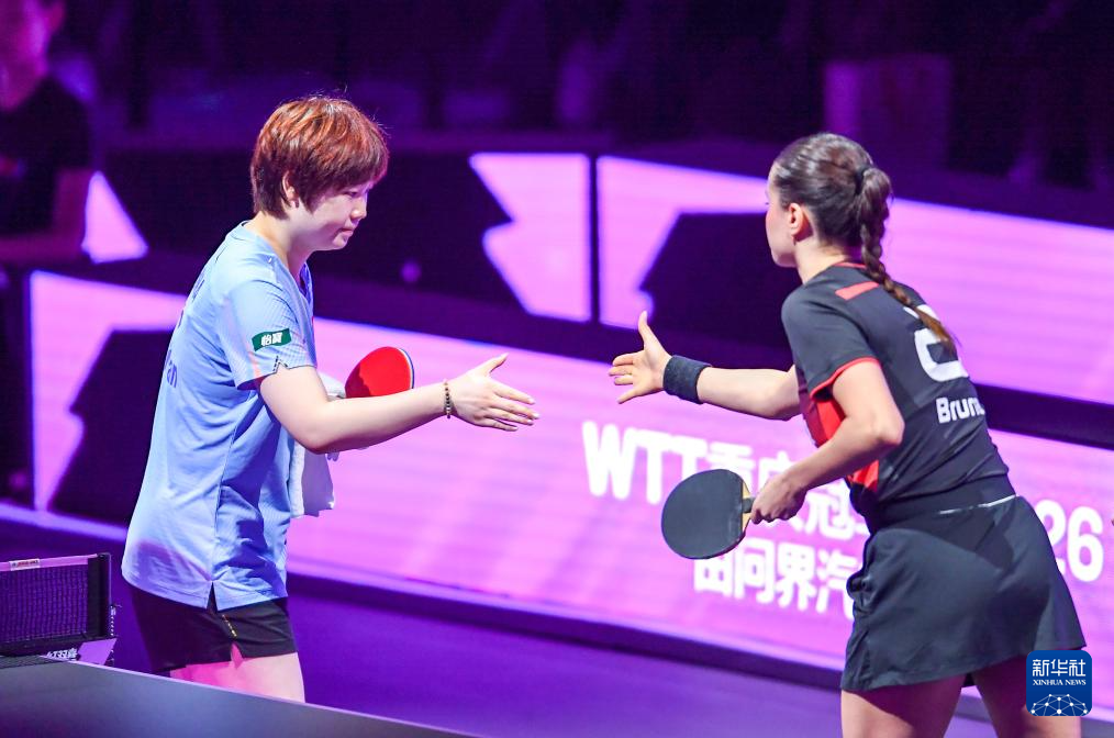 当日,在重庆进行的世界乒乓球职业大联盟(WTT)重庆冠军赛女子单打八分之一决赛中,中国选手蒯曼3比1战胜巴西选手高桥·布鲁娜,晋级八强。