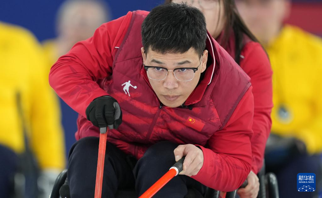 当地时间3月12日,在意大利科尔蒂纳举行的米兰-科尔蒂纳冬残奥会轮椅冰壶混合团体循环赛中,中国队12比3战胜瑞典队。