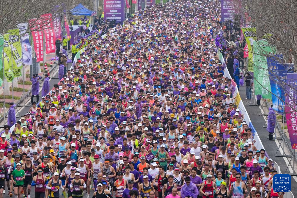 3月15日,2026南京半程马拉松在南京生态科技岛鸣枪起跑。