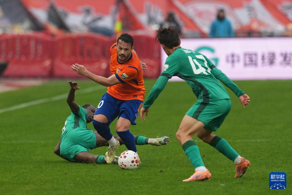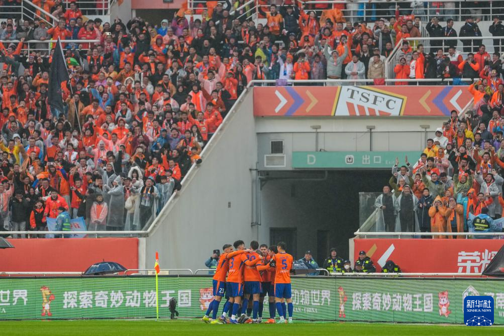 3月14日,在2026赛季中国足球超级联赛第二轮比赛中,山东泰山队主场2比1战胜北京国安队。