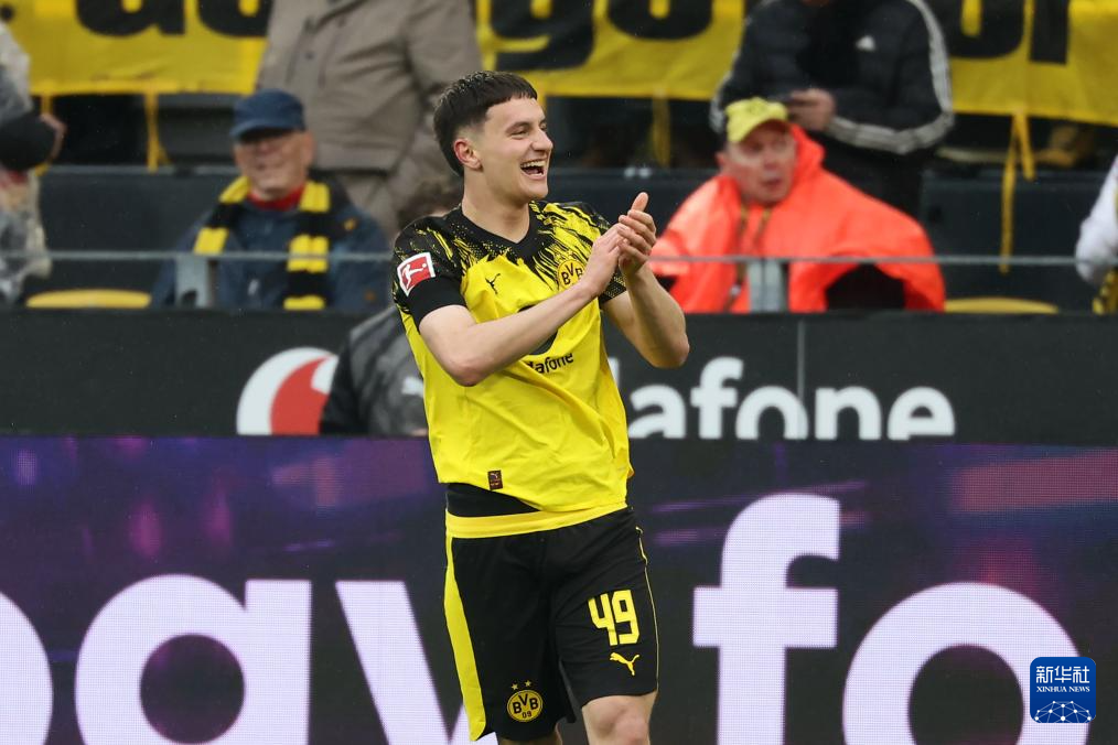 3月14日,多特蒙德队球员雷贾尼在比赛中庆祝进球。