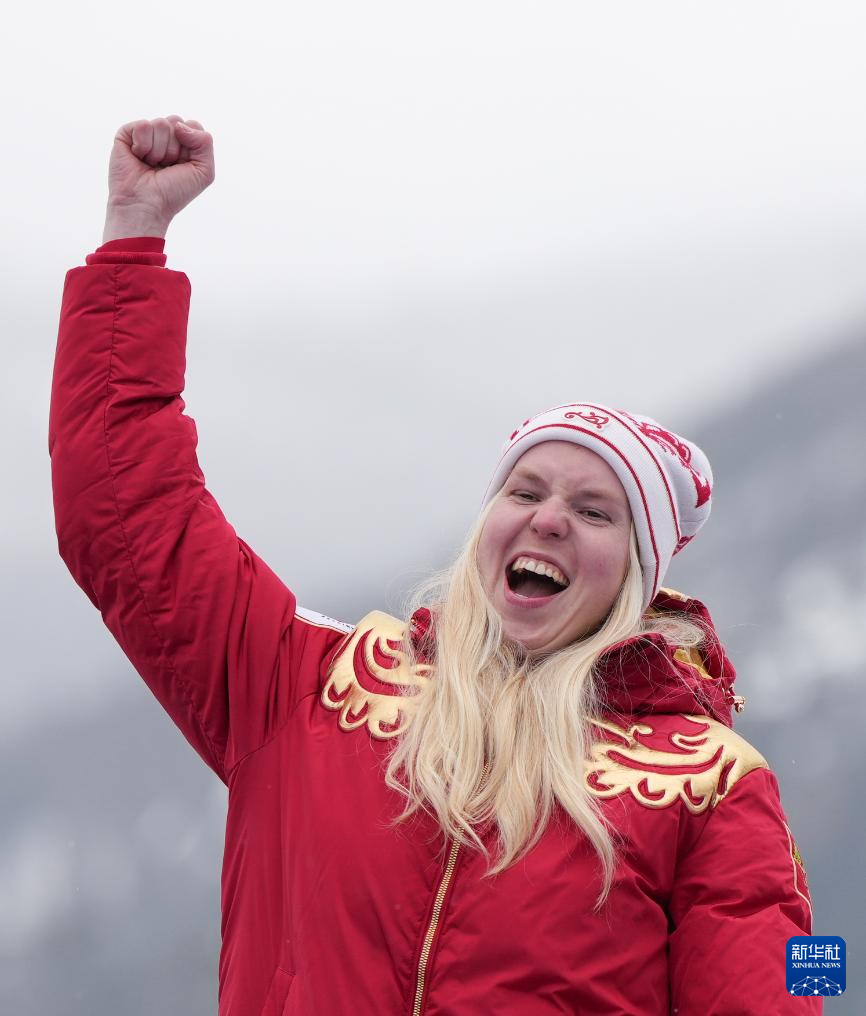 3月14日,冠军俄罗斯选手沃龙奇欣娜在颁奖仪式上庆祝。