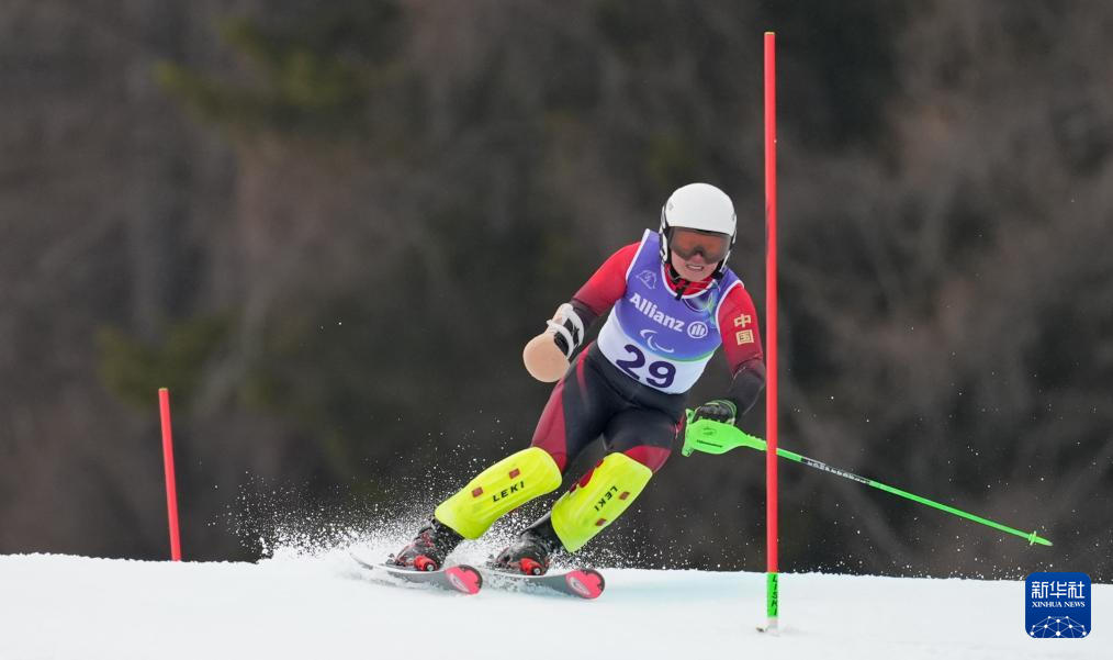 当地时间3月14日,米兰-科尔蒂纳冬残奥会高山滑雪女子回转(站姿)比赛在意大利科尔蒂纳举行。