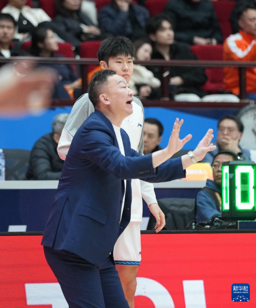 3月14日,青岛崂山啤酒队主教练刘维伟在比赛中指挥。