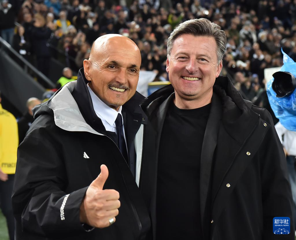 3月14日,尤文图斯队主教练斯帕莱蒂(左)与乌迪内斯队主教练鲁尼亚伊奇在赛前。