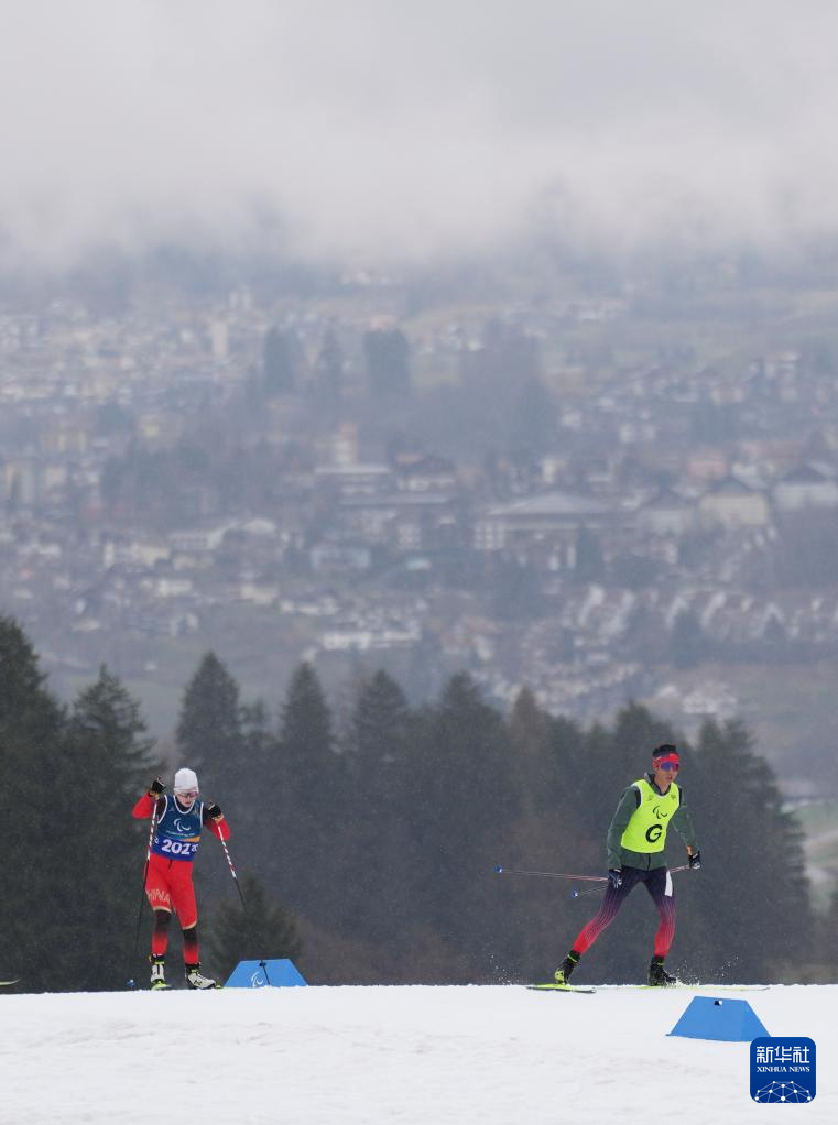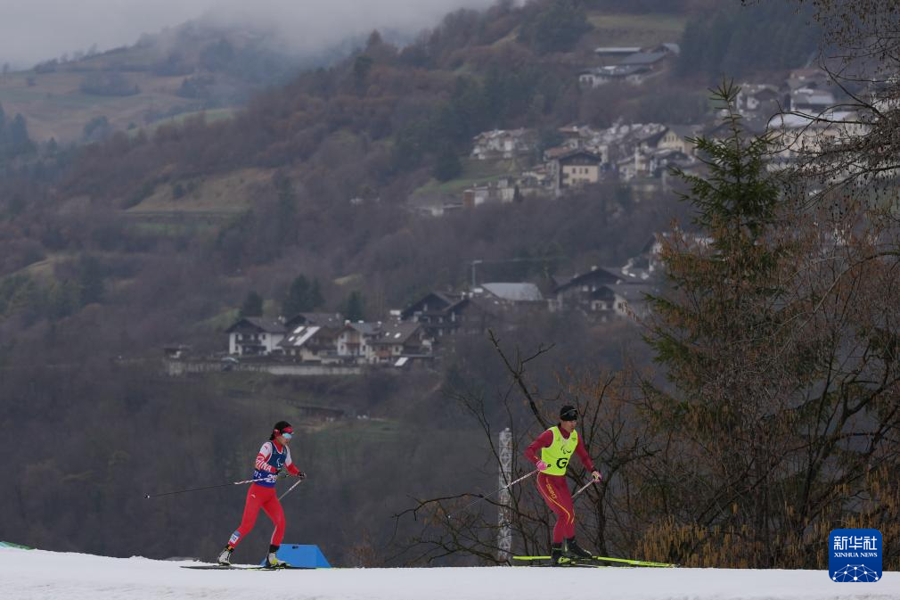 当地时间3月15日,米兰-科尔蒂纳冬残奥会残奥越野滑雪女子20公里(视障)比赛在意大利泰塞罗举行。