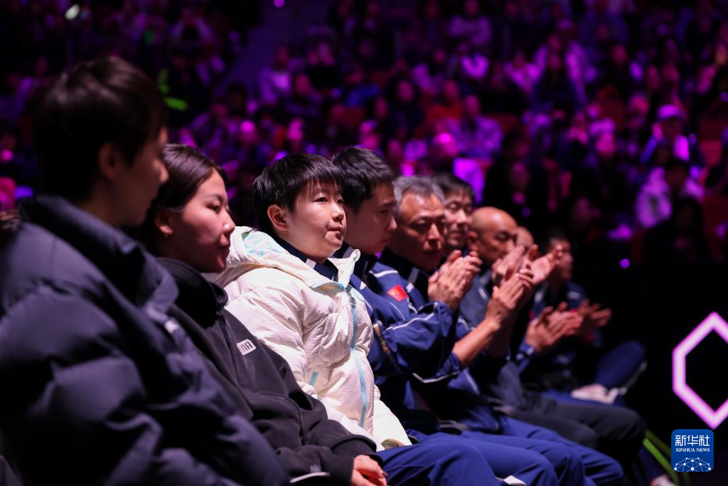 3月15日,孙颖莎和队友在场边观赛。