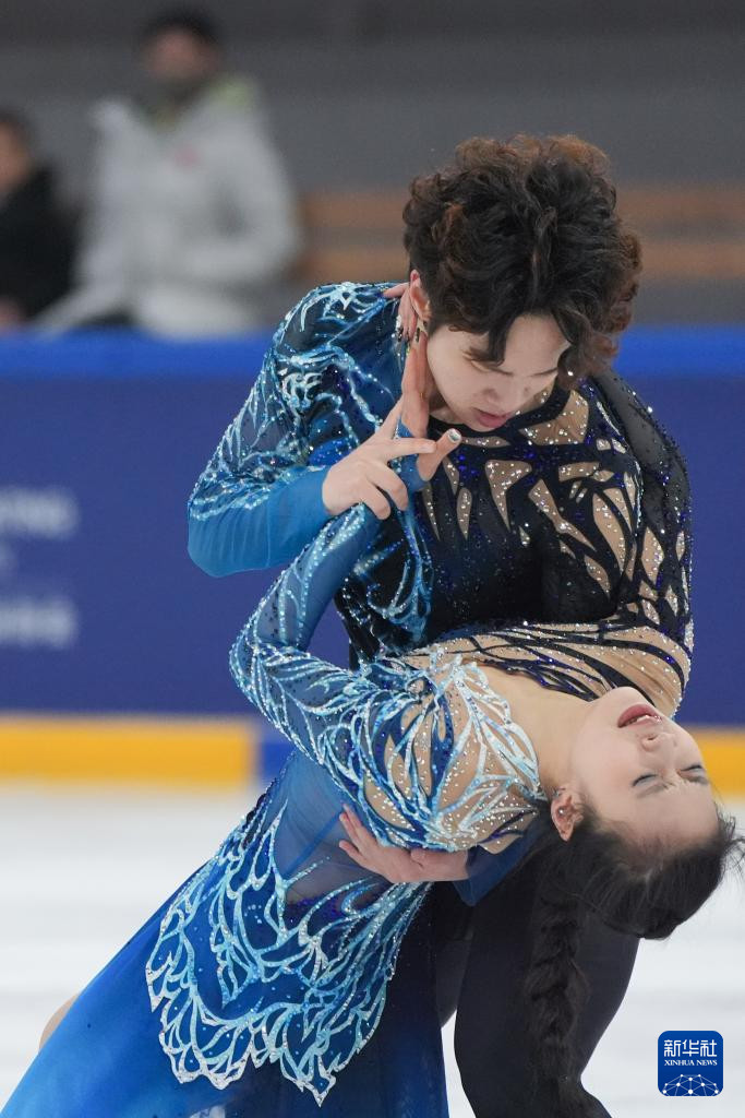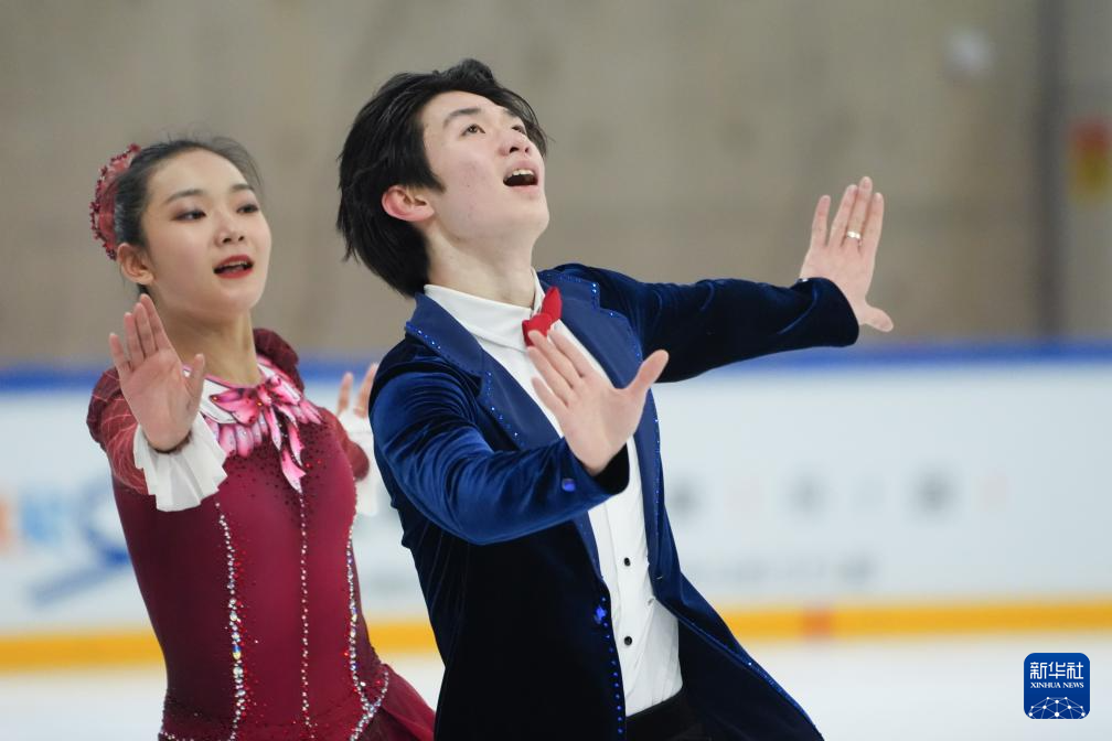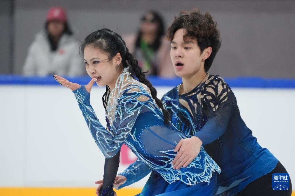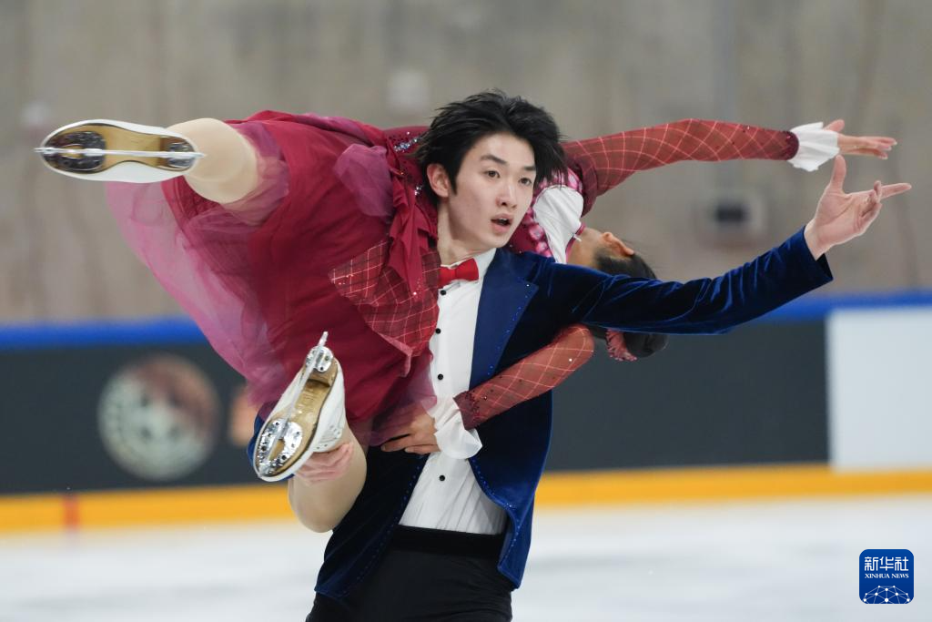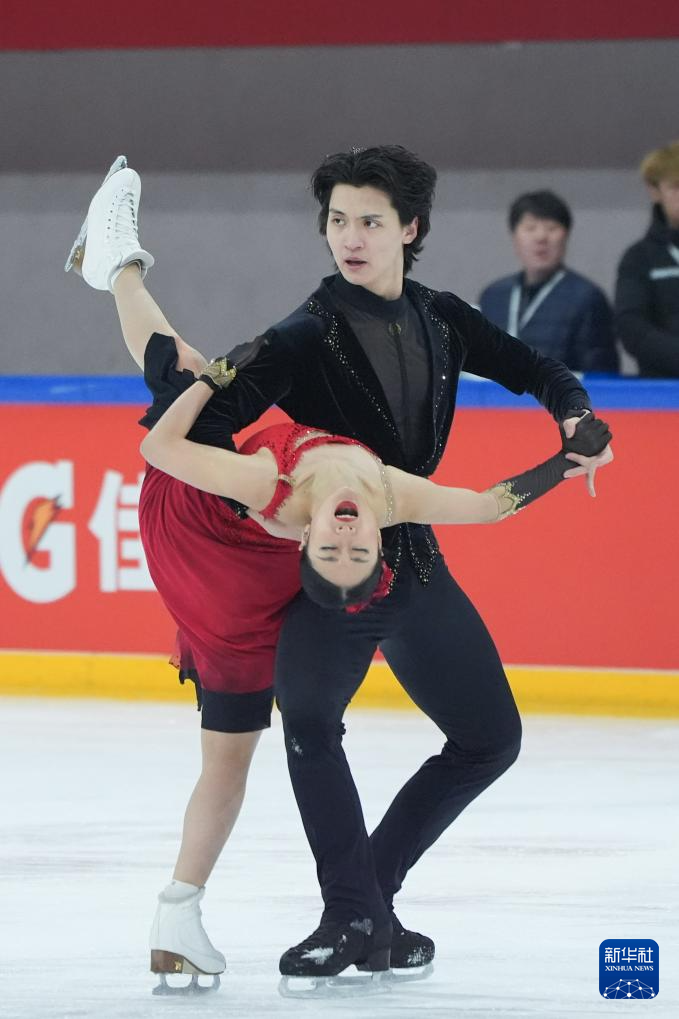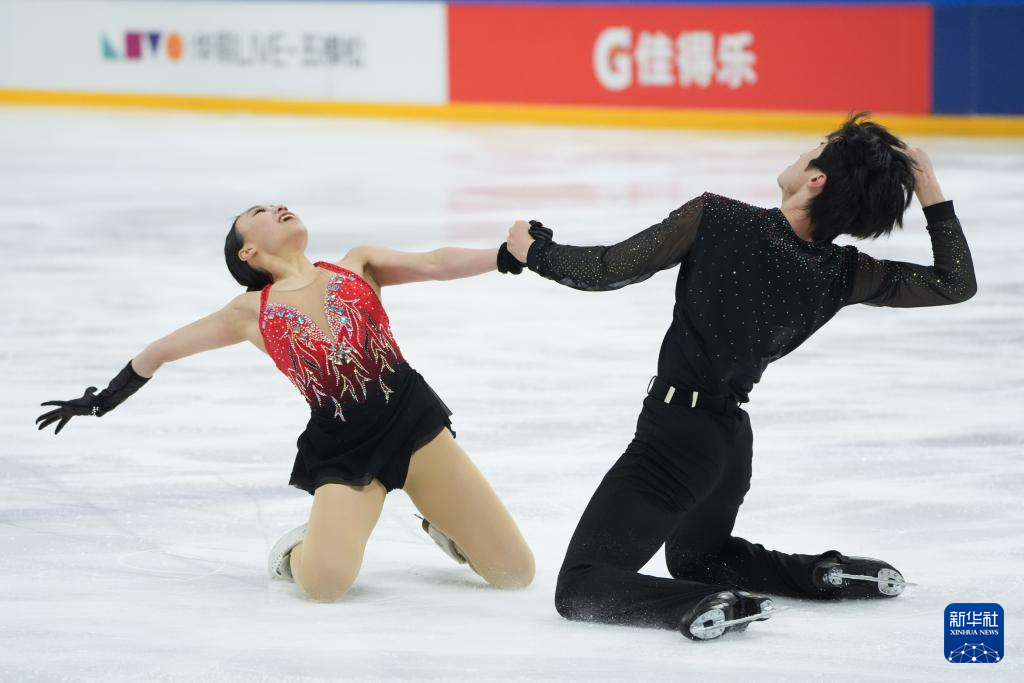 3月15日,吉林省体育局冰上运动管理中心队选手高瑀浠(前)/季周灏在比赛中。