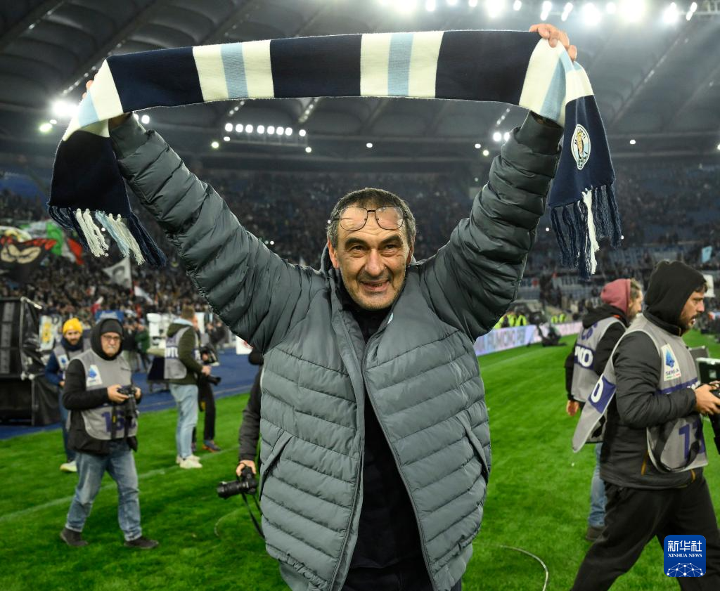 3月15日,拉齐奥队主教练萨里在赛后庆祝获胜。