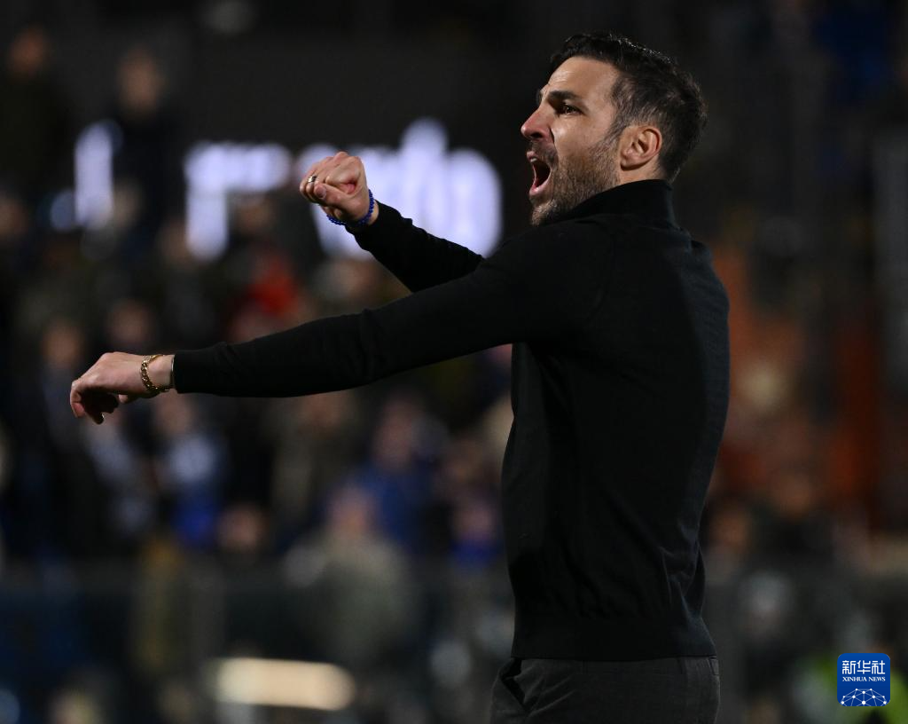 3月15日,科莫队主教练法布雷加斯在赛后庆祝。
