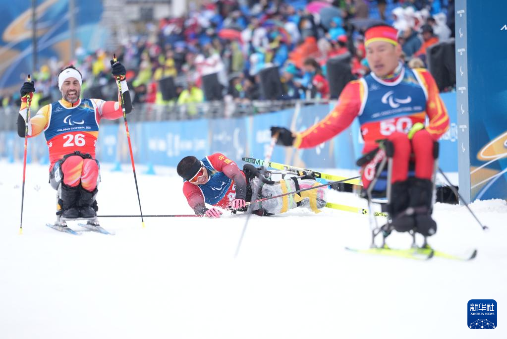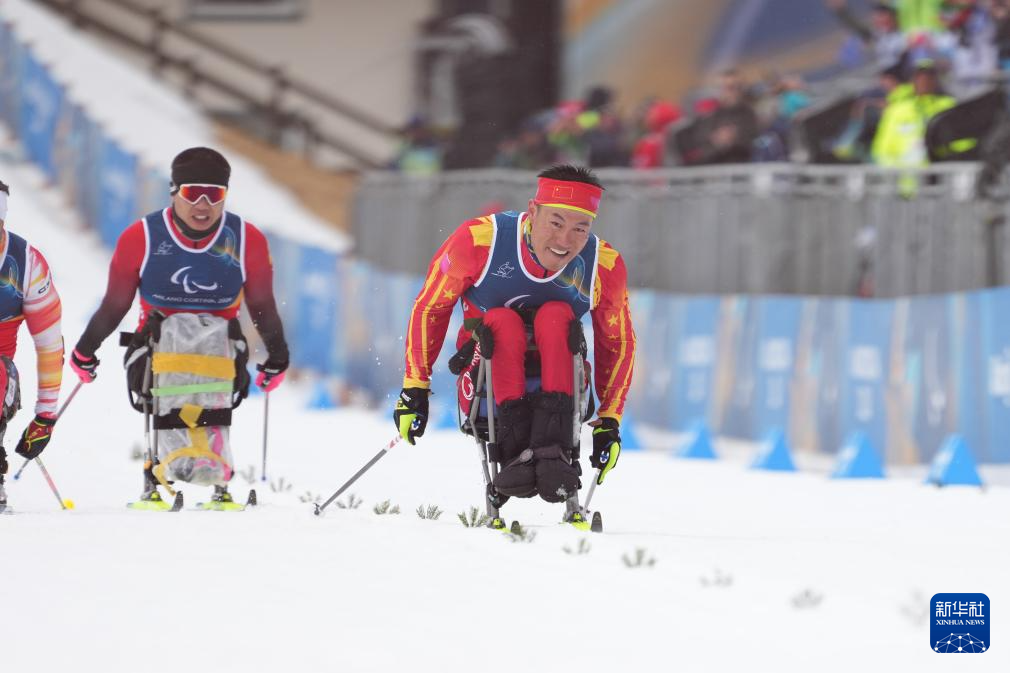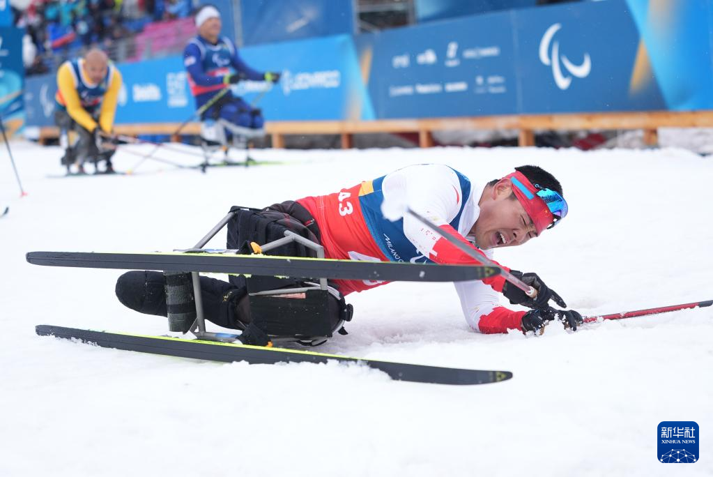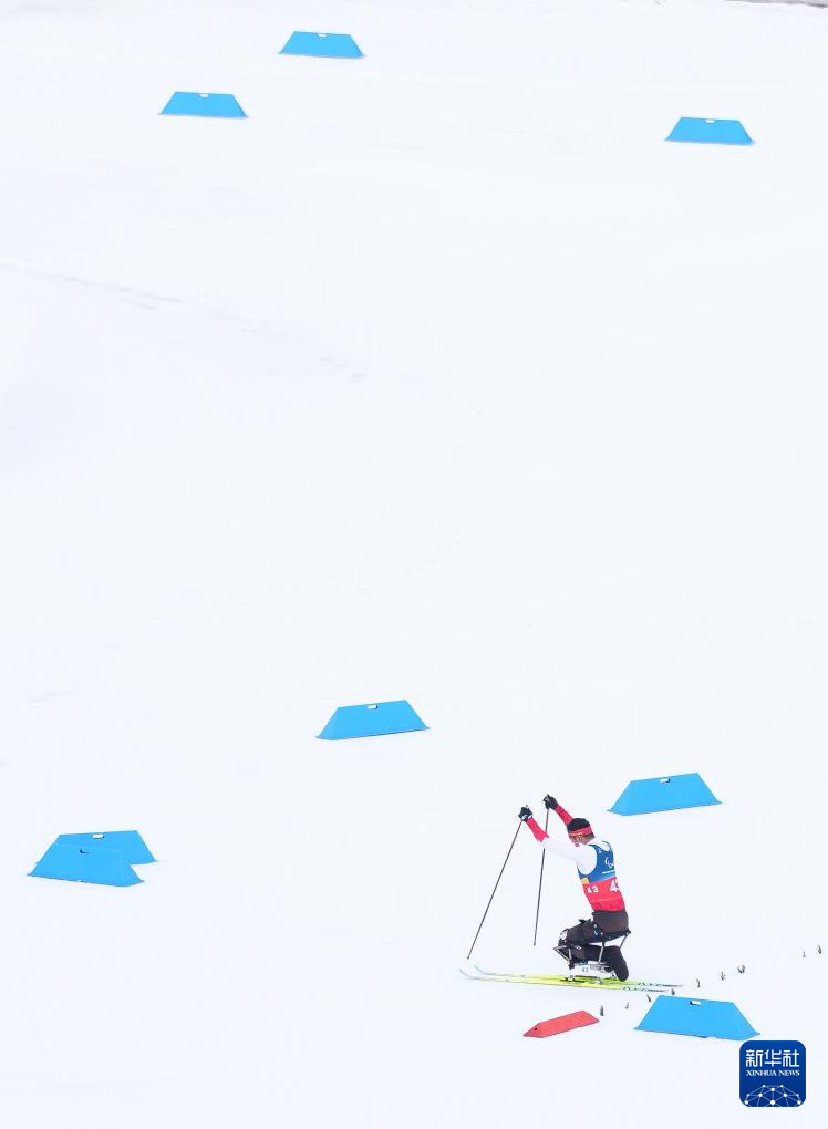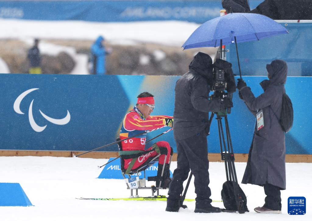 当地时间3月15日,米兰-科尔蒂纳冬残奥会越野滑雪男子20公里(坐姿)比赛在意大利泰塞罗举行。