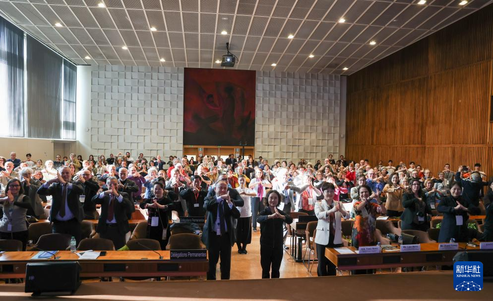 当地时间3月18日,首个“国际太极拳日”即将到来之际,以“健康生活,太极同行”为主题的庆祝活动在法国巴黎联合国教科文组织总部举行。来自中法两国的太极拳习练者同台献艺,展现太极拳的独特魅力与深厚内涵,向世界传播中华优秀传统文化和科学健康的生活方式。