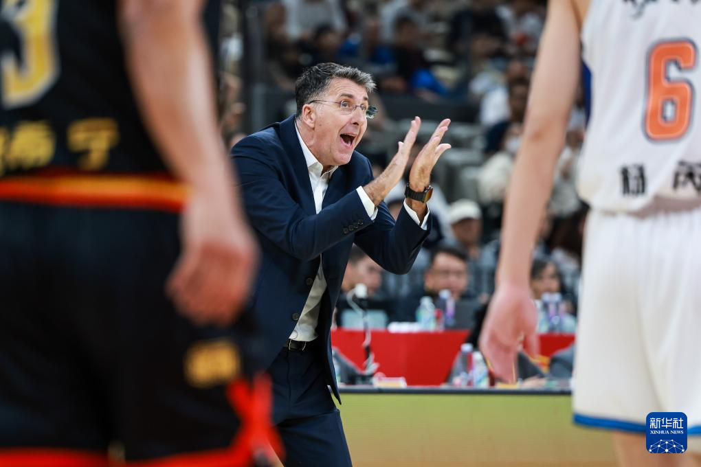 3月20日,新疆伊力特队主教练格兰(中)在场边指挥。