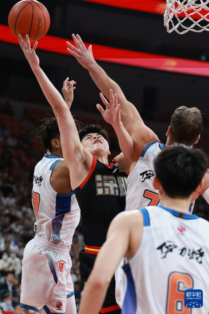 3月20日,新疆伊力特队球员冯傲(左三)在比赛中上篮。