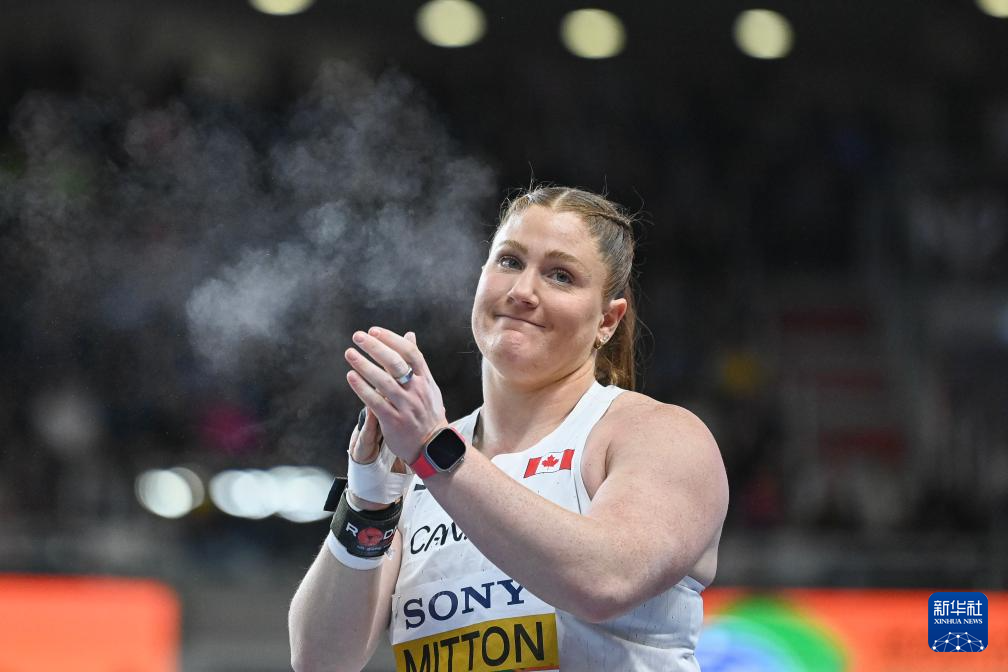 3月20日,加拿大选手米顿在比赛中试投后。她最终获得亚军。