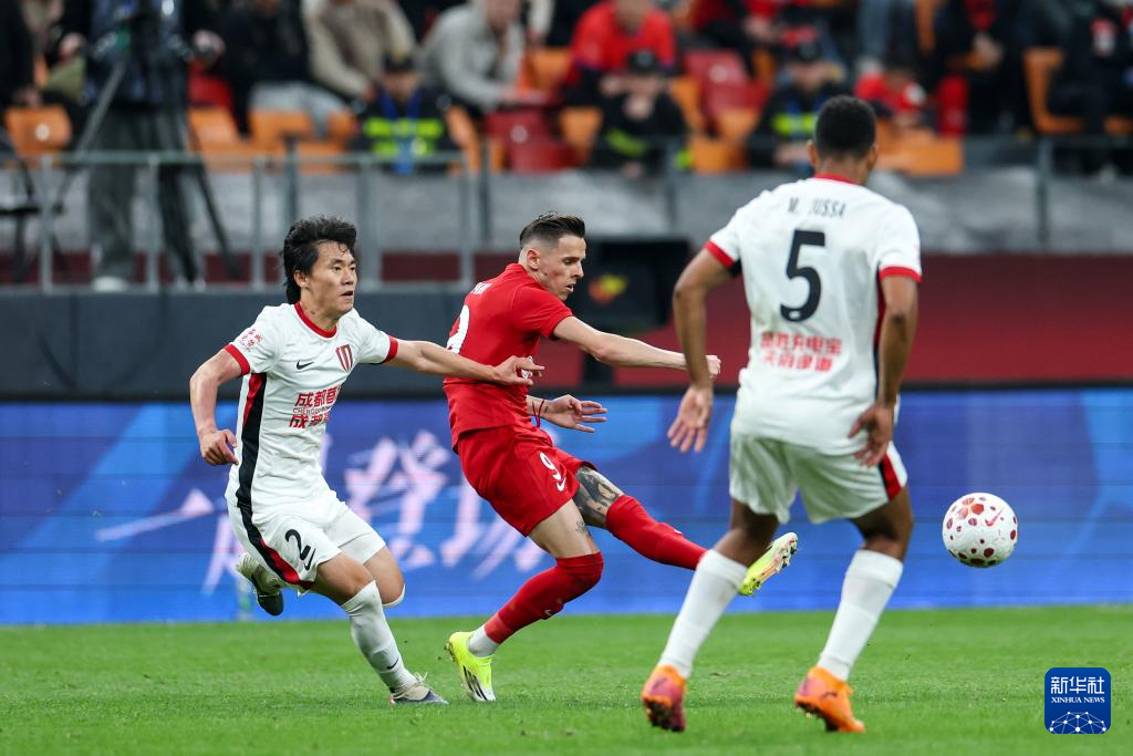 3月21日,在重庆举行的2026赛季中国足球协会超级联赛第三轮比赛中,重庆铜梁龙队主场3比3战平成都蓉城队。