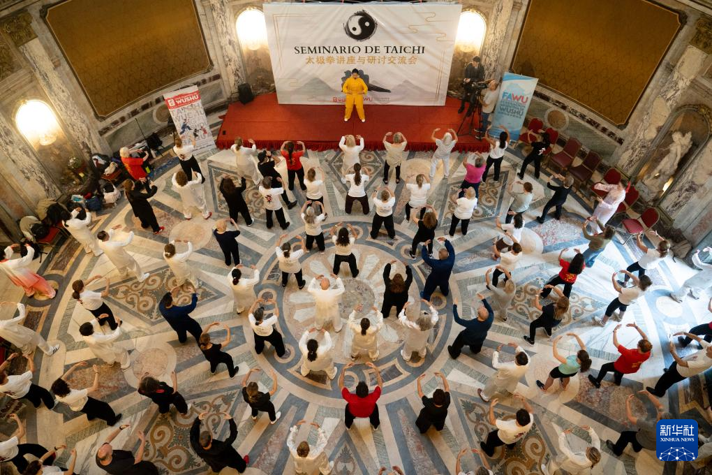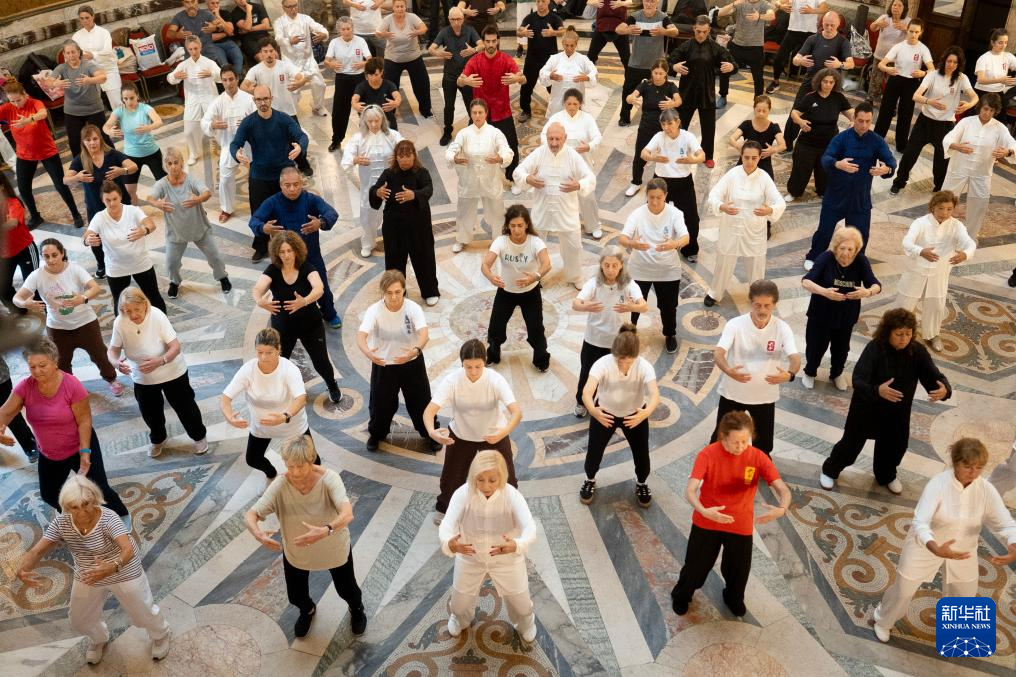 当地时间3月21日,百余名阿根廷武术爱好者在阿根廷布宜诺斯艾利斯庆祝国际太极拳日的到来。本次活动由阿根廷武术俱乐部组织,免费开放,吸引了各个年龄段的武术爱好者参加。