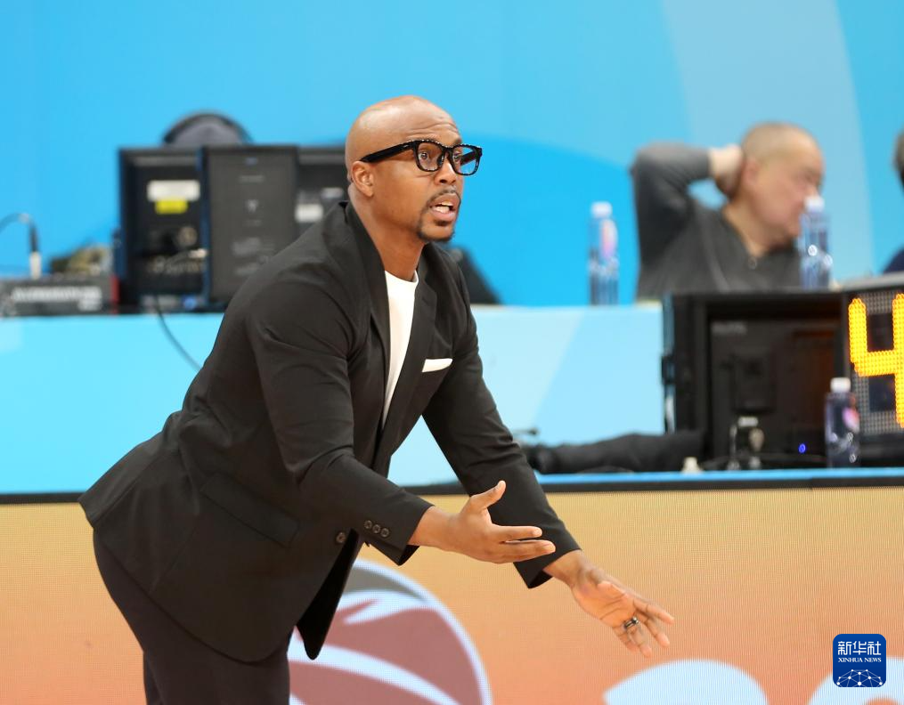 3月21日,广州朗肽海本队主教练米切尔在场边指挥比赛。