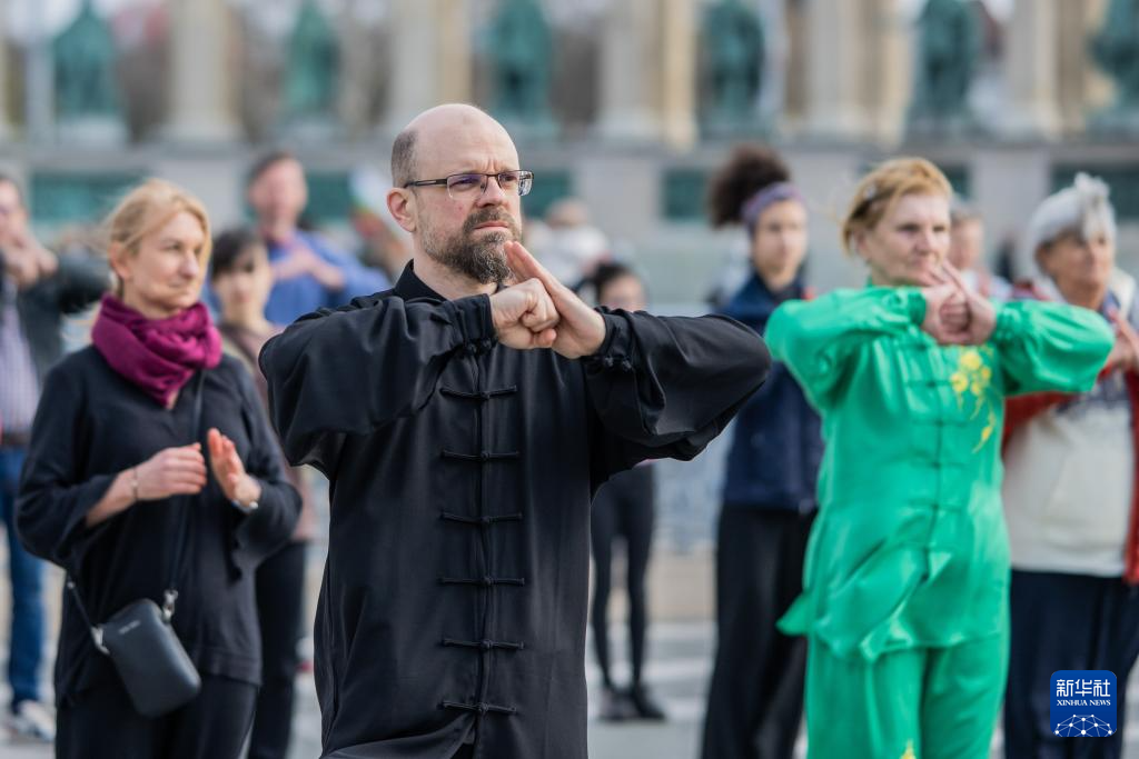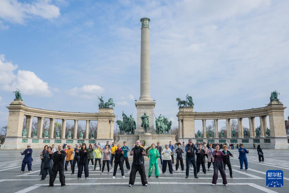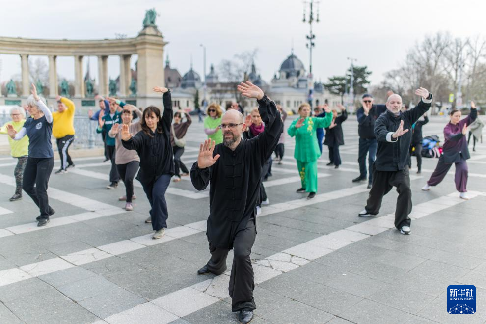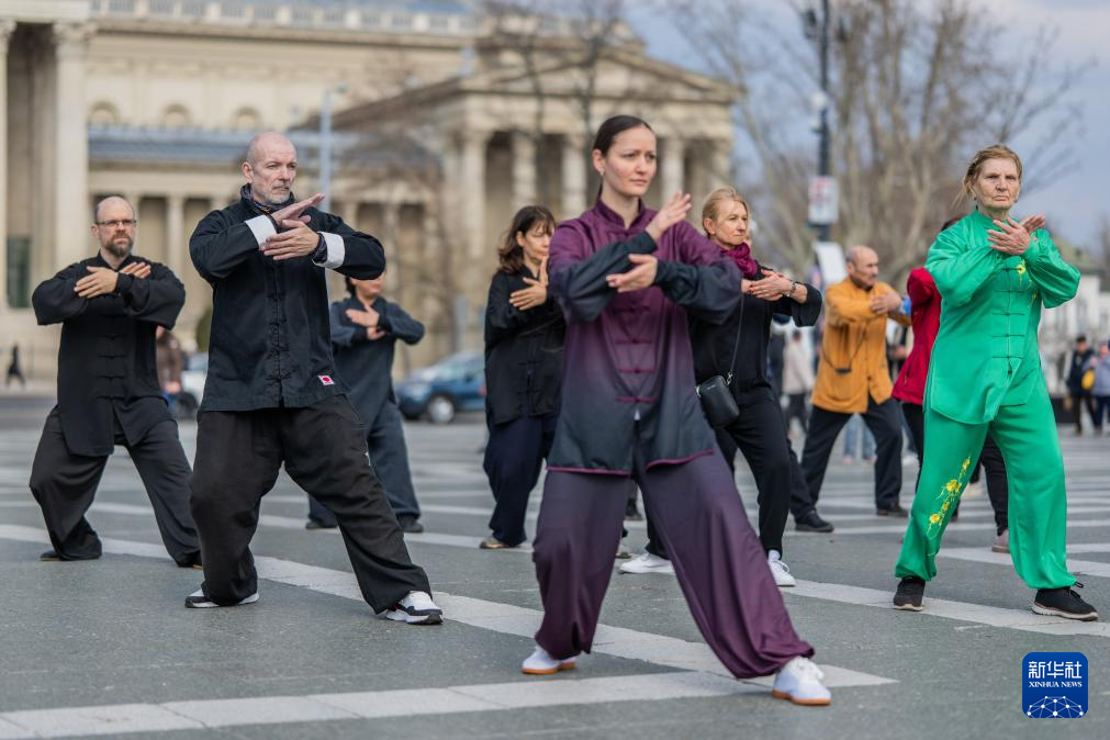 当地时间3月21日,匈牙利武术协会组织当地太极拳爱好者进行太极拳展演,庆祝首个“国际太极拳日”。