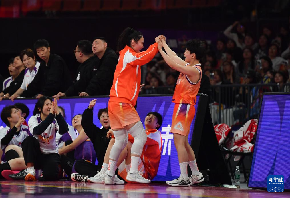 3月22日,张莉彬(右)在比赛结束后庆祝。