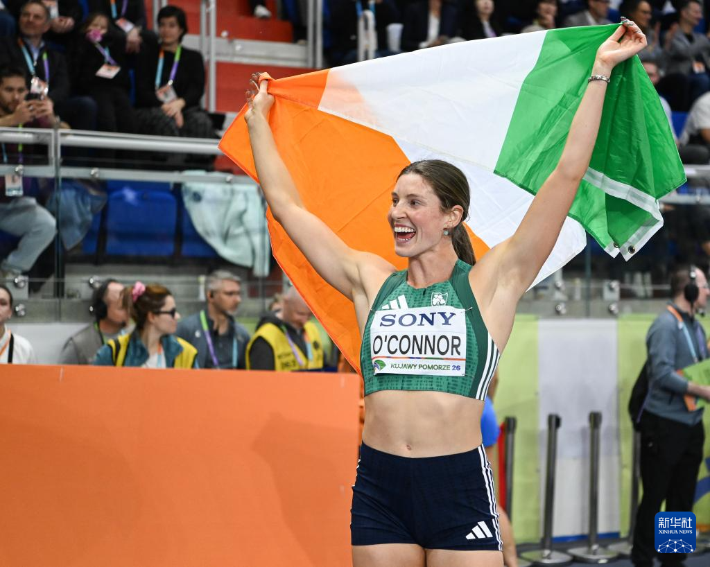 3月22日,爱尔兰选手奥康纳在赛后庆祝。她以总分第三获得季军。