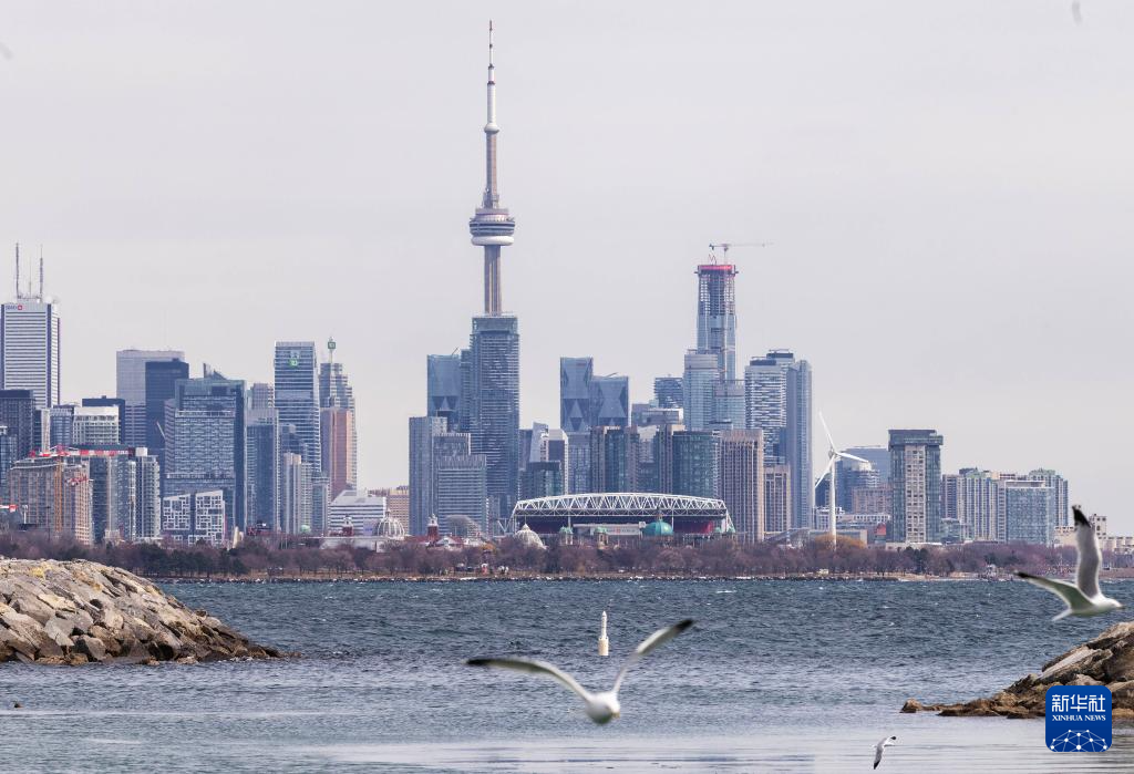 这是3月24日在加拿大多伦多拍摄的多伦多体育场与市区天际线。