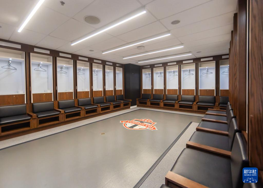 这是3月24日在加拿大多伦多拍摄的多伦多体育场球员更衣室。