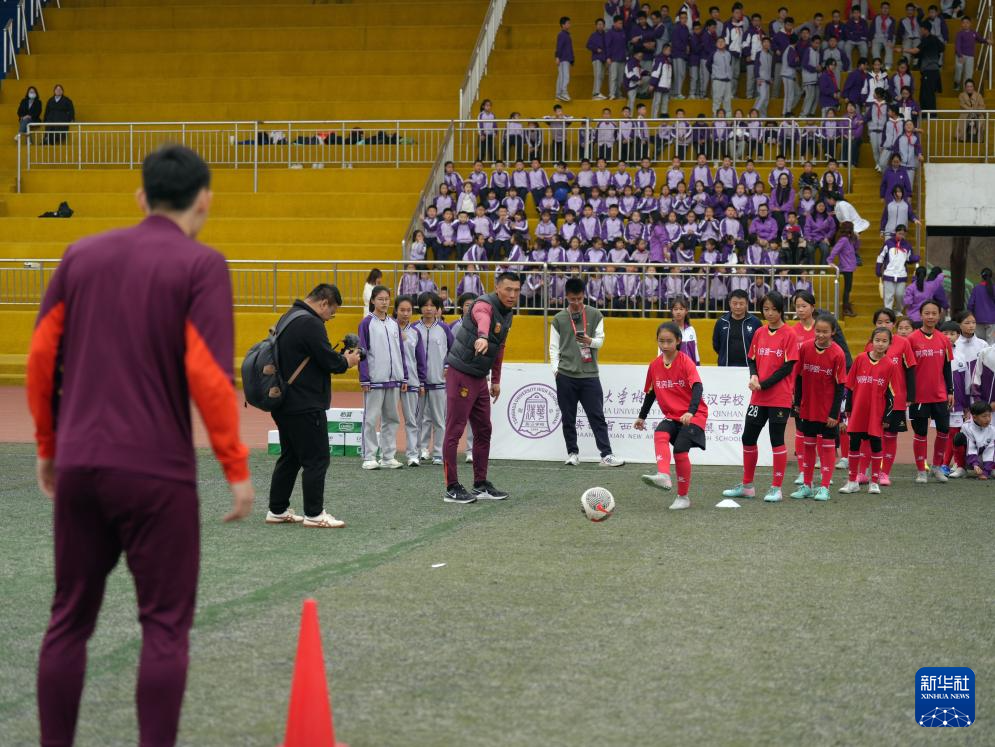3月26日,在2026西安国际青年足球锦标赛比赛间隙,中国U23男足助理教练于大宝和球员代表前往位于陕西西咸新区的清华附中秦汉学校,与当地的中小学生互动、交流。