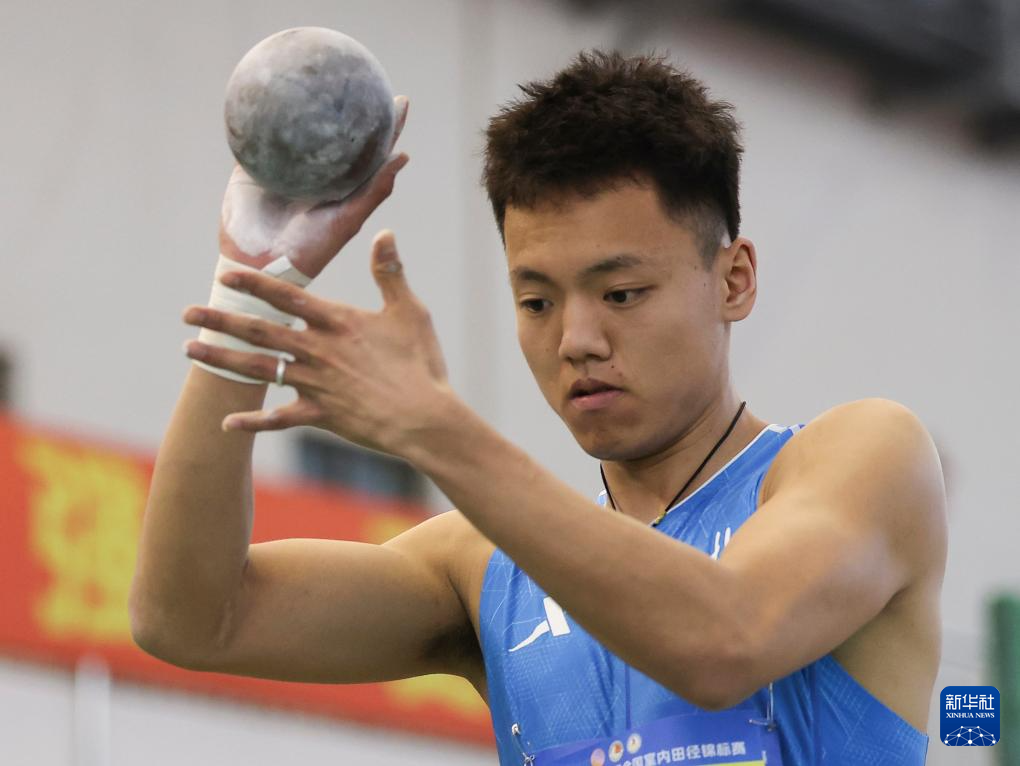 3月27日,吉林队选手陈兴华在男子七项全能铅球比赛中。