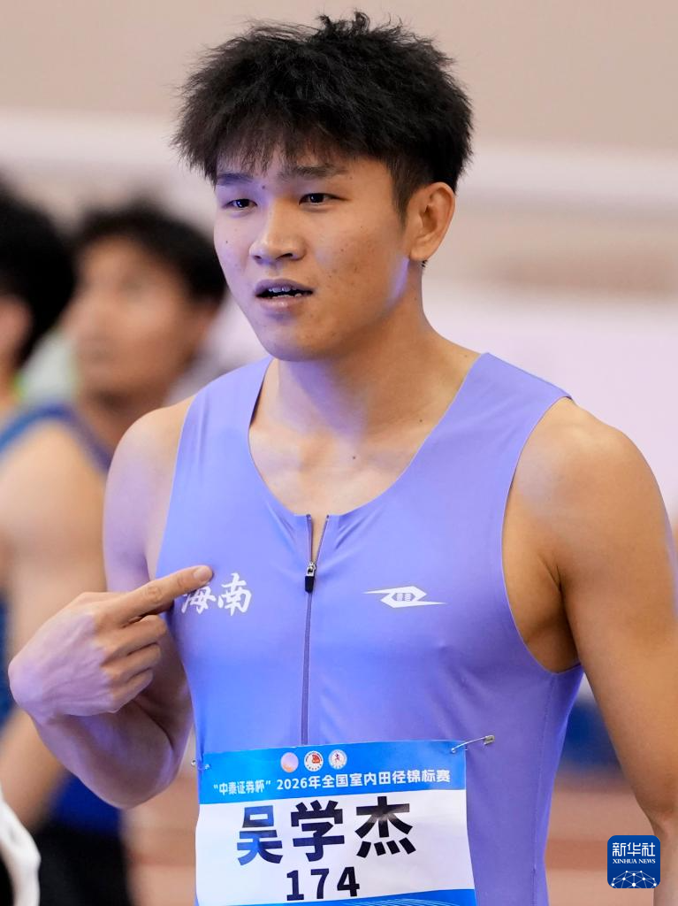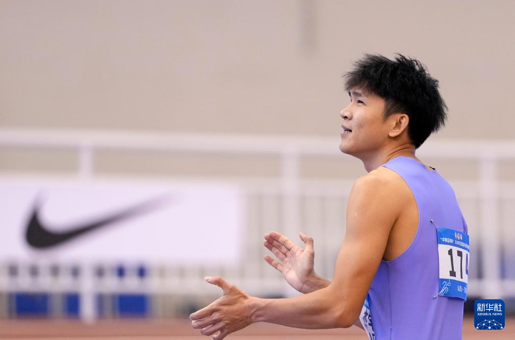 3月27日,海南弹射者队选手吴学杰在男子60米决赛后。他获得冠军。