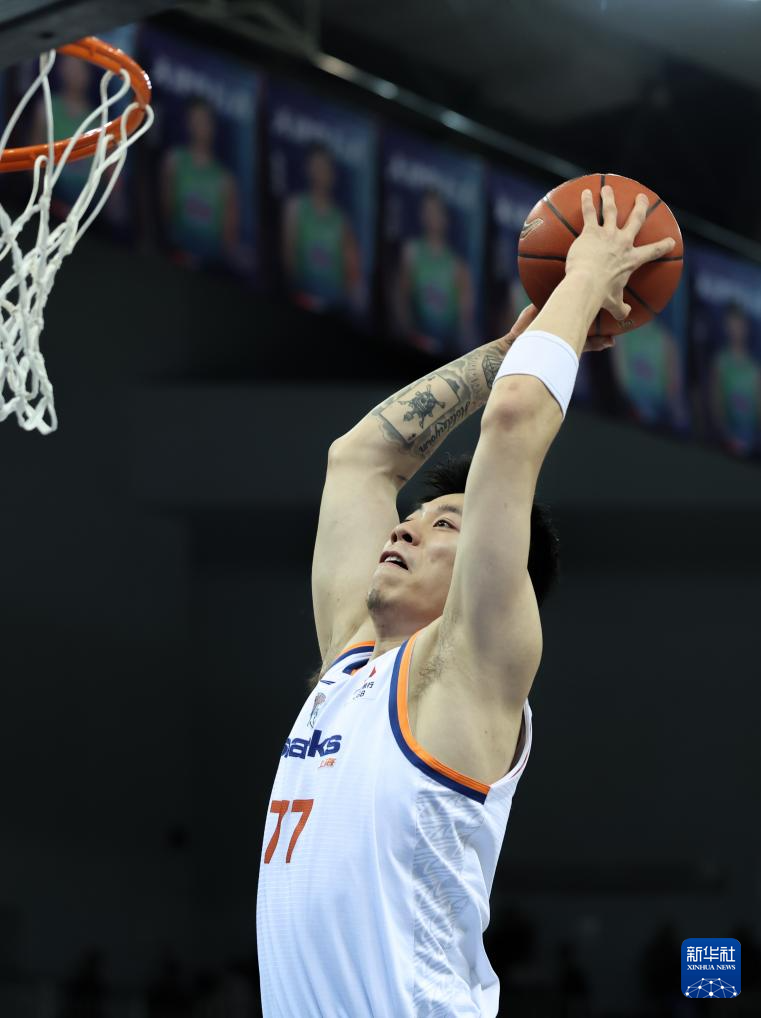 3月27日,上海久事队球员张镇麟在比赛中扣篮。