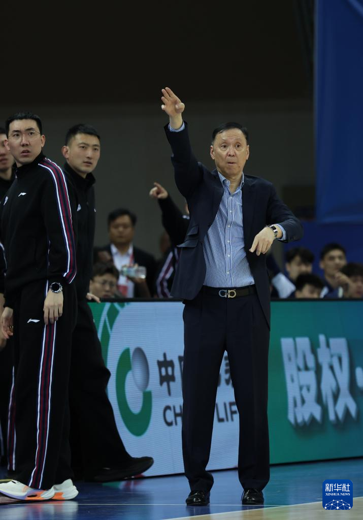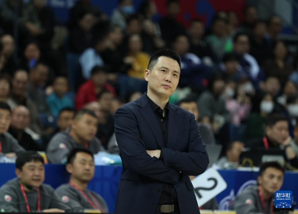 3月27日,上海久事队主教练卢伟在场边观赛。